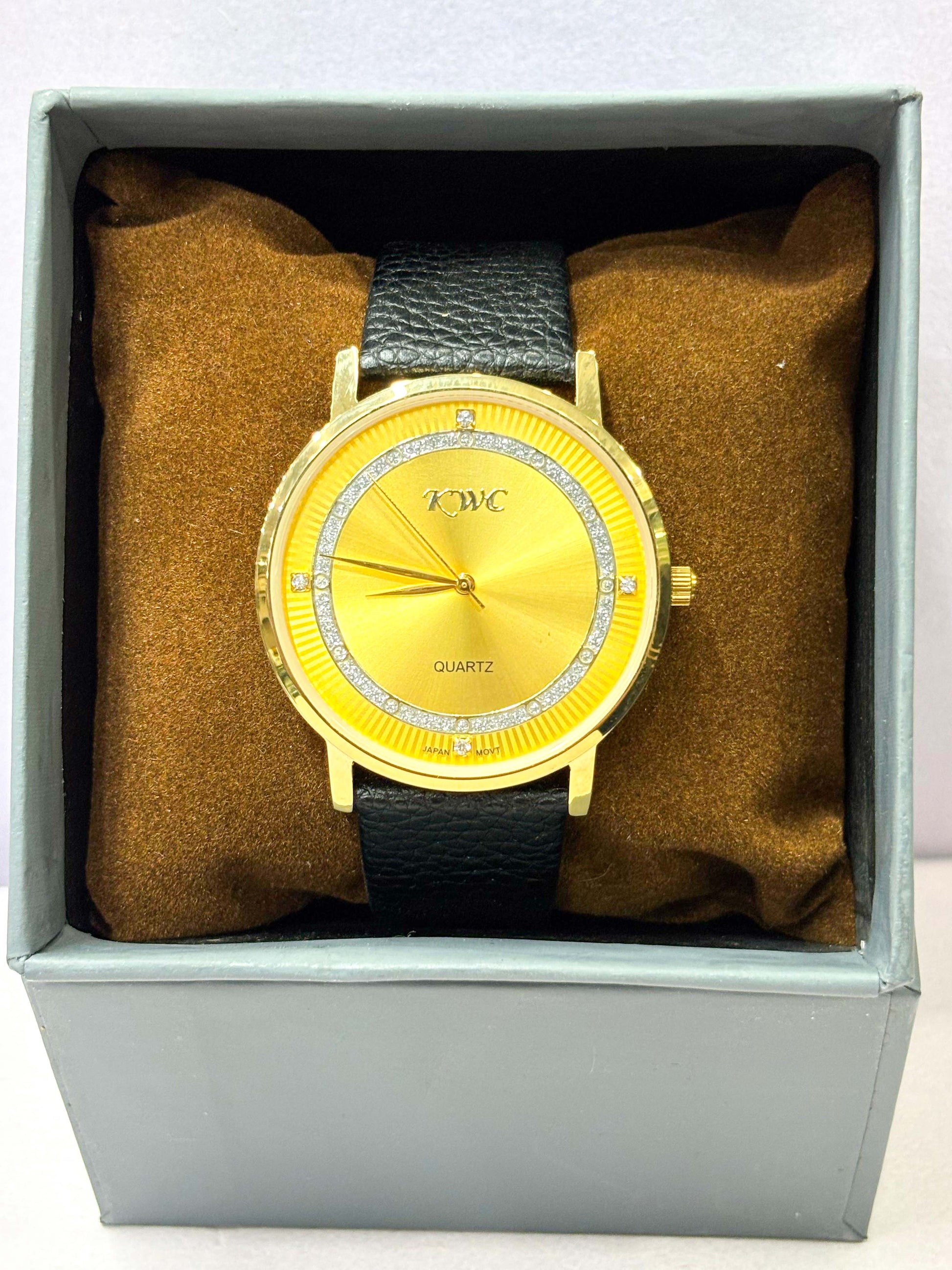 KWC Elegant Slim Silver Dial Watch with Black Leather Strap – Minimalist Quartz Timepiece
