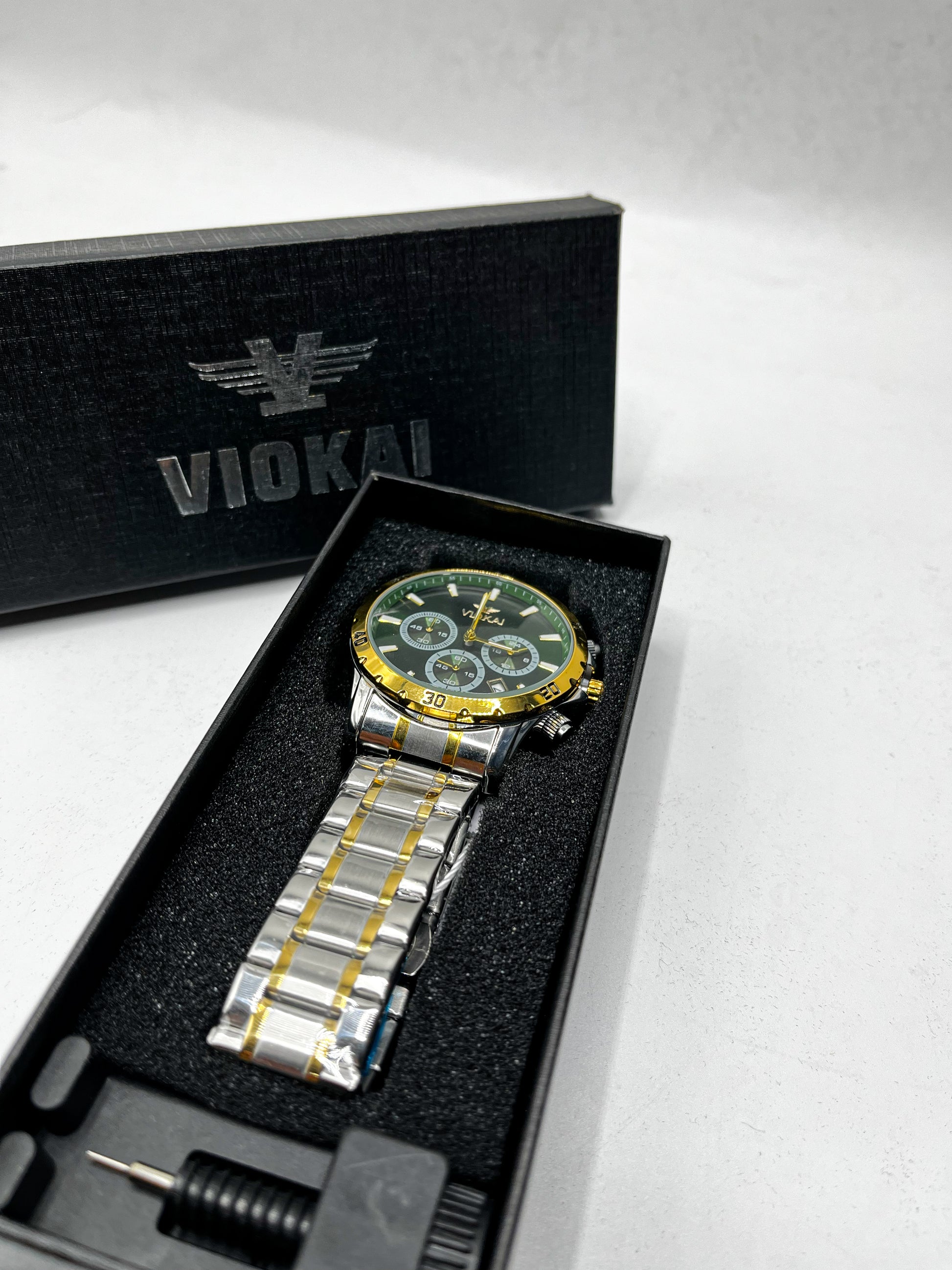 Viokai Gold & Silver Men’s Chronograph Watch – Luxury Stainless Steel Quartz Wristwatch